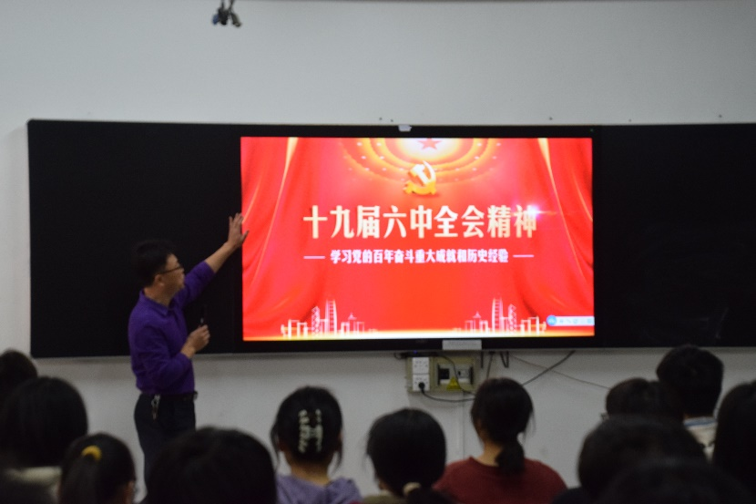 为深入学习党的十九届六中全会精神,增强学生的民族自信心和自豪感,12月6日,粤台学院分党校在莞城校区机电楼312教室举行第12期入党积极分子培训班第四讲。此次党课由学院院长陈伟主讲,第12期全体入党积极分子参加。
