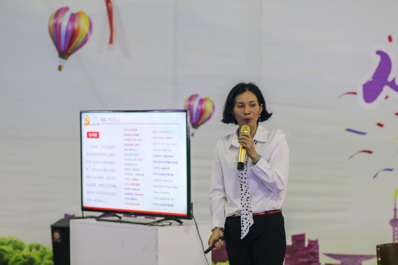 会上,宋美娴结合学校今年开展大学生合唱比赛,对我院合唱曲目《长征组歌》之《报喜》以及歌曲《不忘初心》的曲目创作历史背景、时代意义进行了详细介绍。同时,宋美娴结合汶川地震纪念日,共同回顾2008年党中央带领全国各族人民取得抗震救灾的重大胜利。最后,宋美娴结合自己在参加庆祝建党一百周年书画创作比赛的作品为例,鼓励广大青年学生要以党史学习为契机,努力学习,不断提高个人综合素质,成为社会主义事业建设者和接班人。
