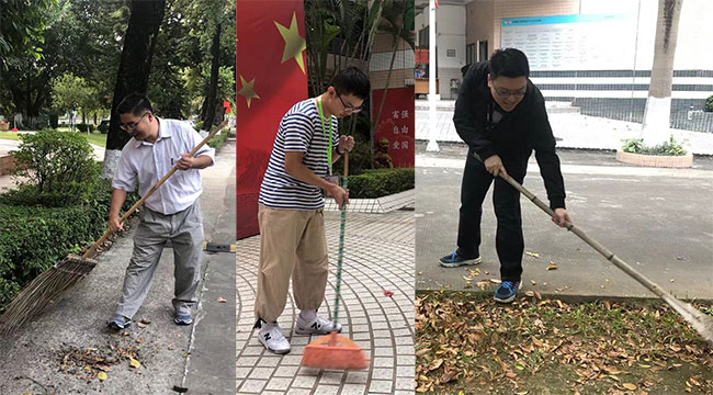 开班仪式结束后,粤台学院2019级学生在学院领导、老师的带领下,一起清扫校道及课室等劳动实践实验区我们期待,大家在接下来的“劳作”生活中,能够延续军训中吃苦耐劳、不畏艰难的优秀品质;也期待同学们能将“工匠之心,精益求精”的口号牢记心中,能保持一颗积极向上的心,在这一年的劳作生活中每天都能拥抱灿烂的阳光!