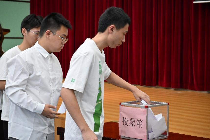 在竞选投票环节。7名学生会主席团候选人陆续上台发表竞选讲话。经民主选举,尹菲尔、周陶峰、黄鹏豪当选第粤台学院十一届学生会主席团成员。同时,大会还选举了林钟博,黄鹏豪,周陶峰,李汤维,尹菲尔,蔡永金,姚博伦,邹馨蔓,李燊,郑雅文当选粤台学院第十一届学生委员会成员。