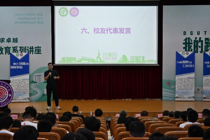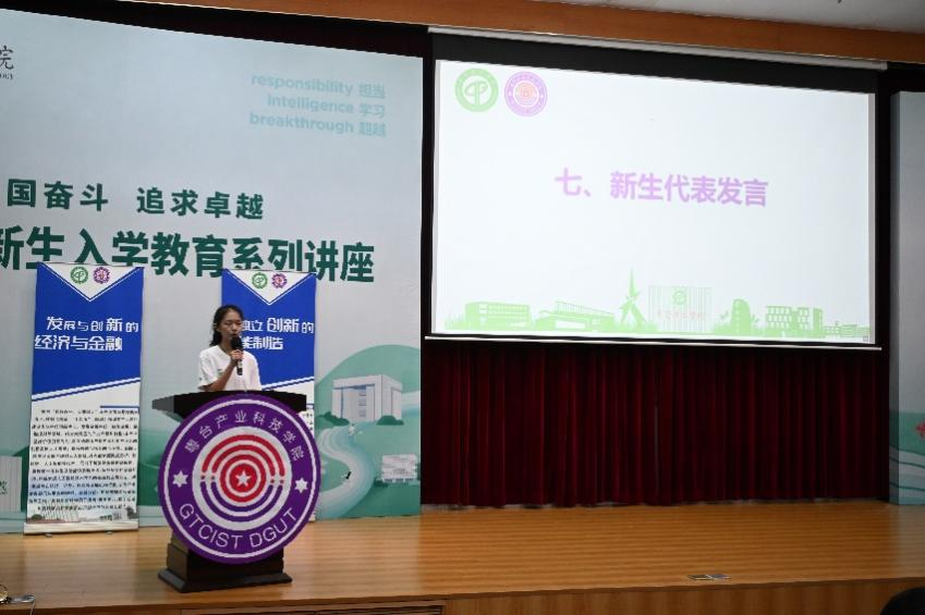 在校生代表沈佳明分享成长经验,他鼓励师弟们要充分利用好粤台学院这个不一样的平台,实现不一样的精彩。校友代表,校友会会长陈金晖为新生送上祝福,祝愿新同学在大学生活中锚定目标,实现理想。新生代表武俊尧表达了对未来的期待。她表示,来到莞工,来到粤台,将通过自己的努力,积极向老师和同学学习,使自己不断提升。