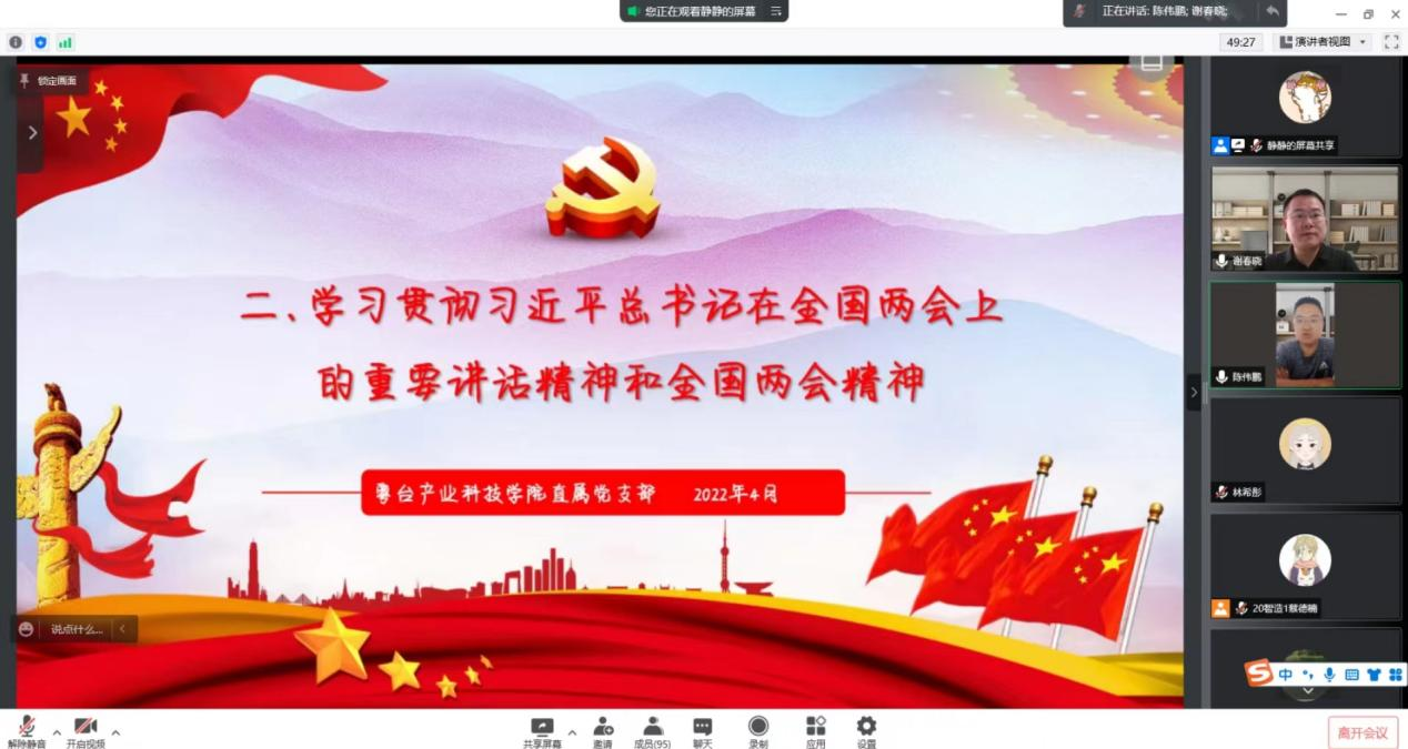 4月14日,yl6809永利检测中心直属党支部召开学生党员大会,学习习近平总书记在中央政治局常委会关于疫情防控的重要讲话精神、学习贯彻习近平总书记在2022年全国两会上的重要讲话精神和全国两会精神。学院组织员陈伟鹏主持会议,副书记谢春晓、辅导员和全体学生党员参加会议。