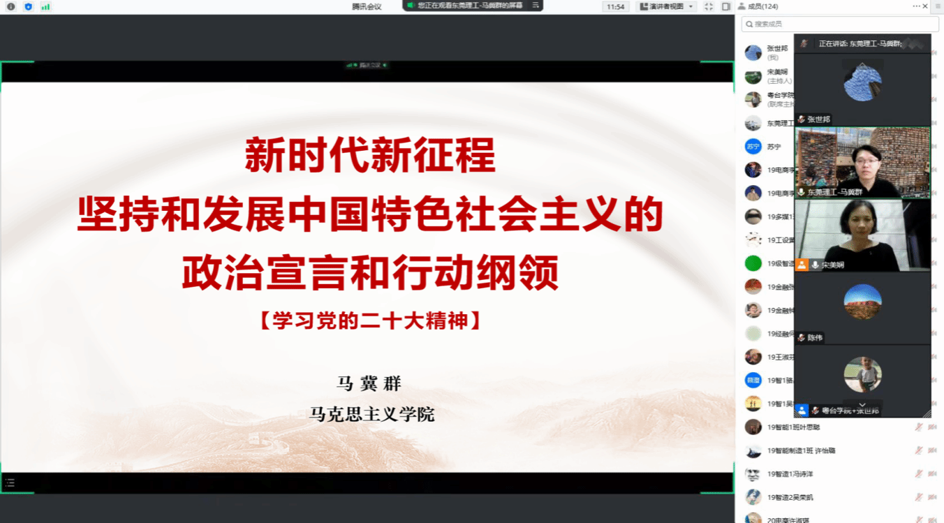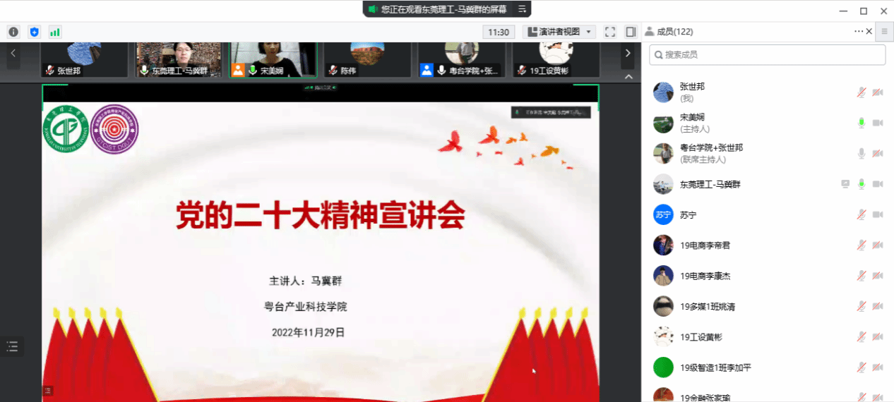 11月29日,粤台学院党委邀请马克思主义学院马冀群博士宣讲党的二十大精神。会议由学院党委书记宋美娴主持,学院全体教职工和师生党员共120多人参加了线上学习。