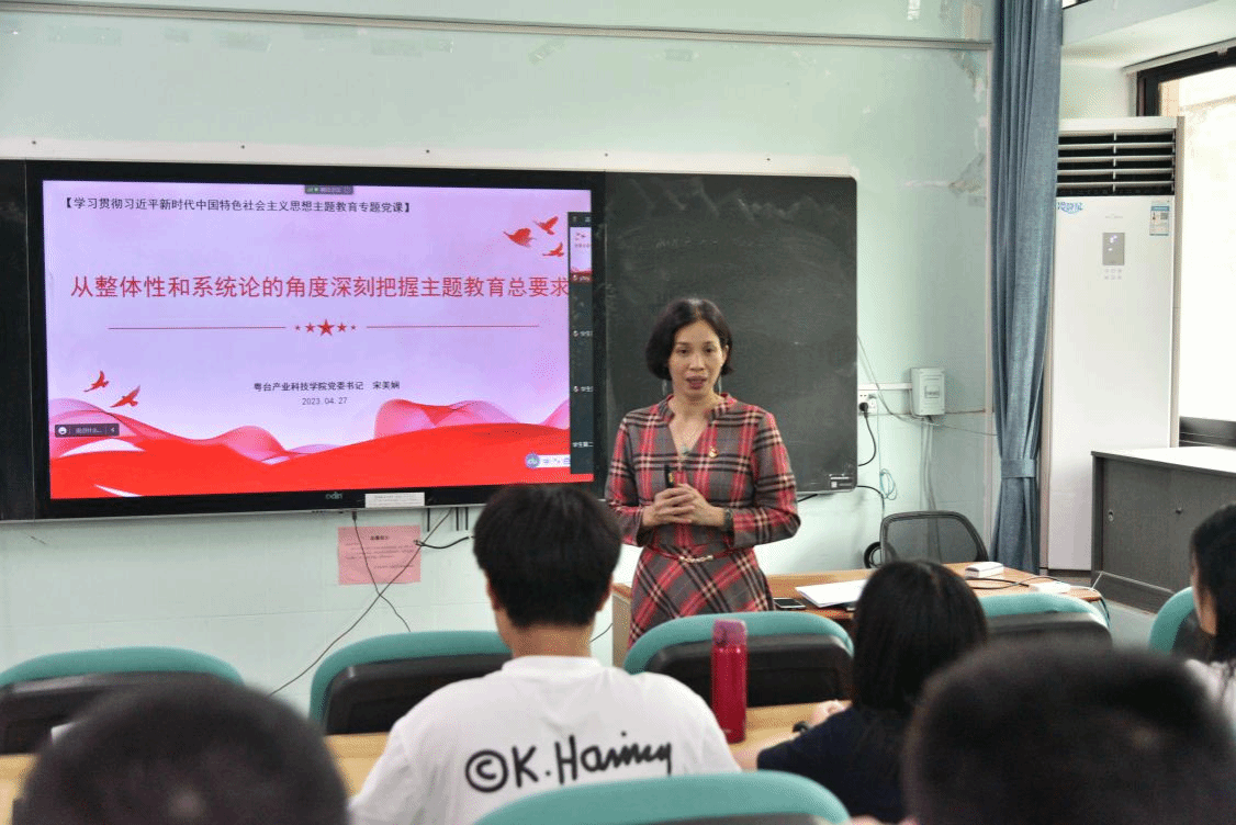 按照学校和学院关于学习贯彻习近平新时代中国特色社会主义思想主题教育工作部署安排,近日,粤台学院党委书记宋美娴在实验楼305阶梯教室讲授主题教育专题党课。学院全体师生党员参加。