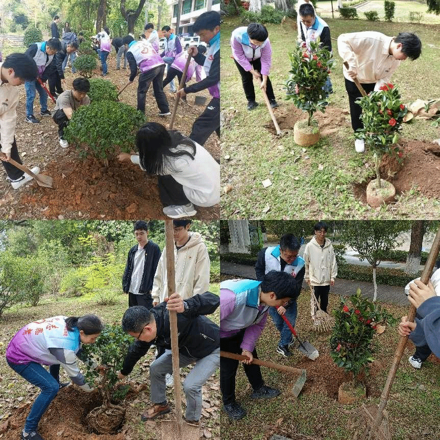 此次活动在莞城校区“守正园”和机电楼东侧绿化草地举行,学院领导干部带领师生党员进行了植树护绿活动。活动现场,党员们干劲十足,热情高涨,大家根据分工有序地进行挖土穴、撒肥、覆土、浇水、植苗等,每道工序紧密衔接,呈现一派热火朝天的劳动图景,通过实践行动进一步在校园内营造植绿、爱绿、护绿氛围。