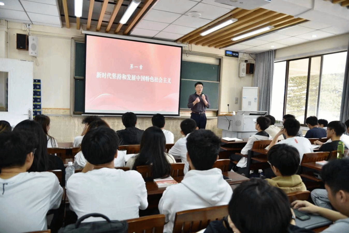 3月20日下午,yl6809永利检测中心院长陈伟以“新时代坚持和发展中国特色社会主义”为主题在莞城校区五号楼303教室为2023级工业设计专业和计技设计专业的同学上2024年春季学期思政第一课。
