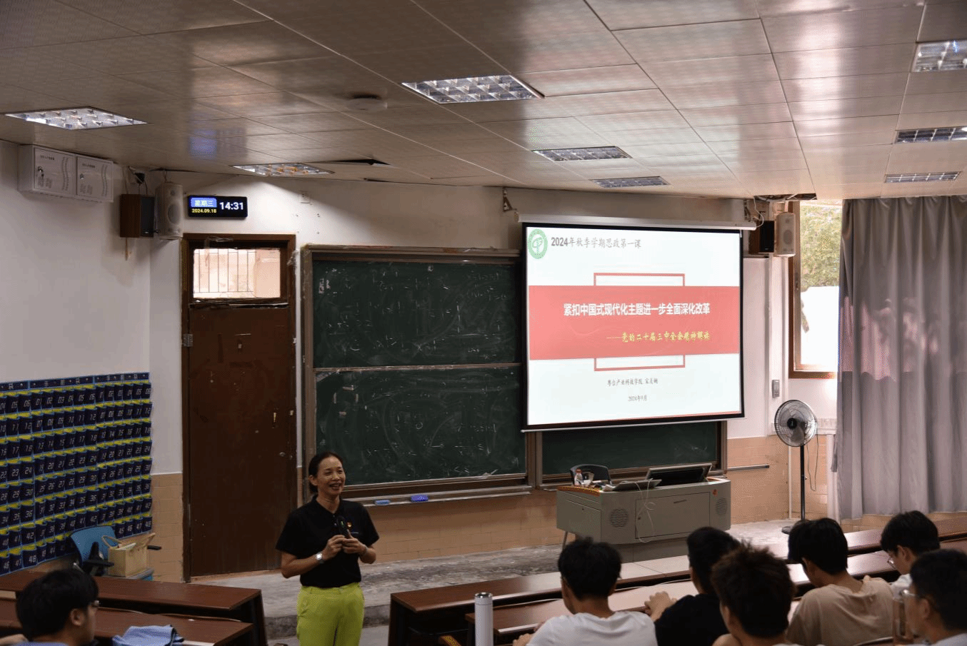 为深入学习贯彻习近平总书记在党的二十届三中全会上的重要讲话精神,使学生进一步坚定理想信念,强化使命担当,9月18日,粤台学院党委书记宋美娴在莞城校区六号楼阶梯教室为2023级(粤台)工业设计1班、电商1-2班和计技1班共136名学生讲授了以《紧扣中国式现代化主题,进一步全面深化改革——党的二十届三中全会精神解读》为题的“思政第一课”。