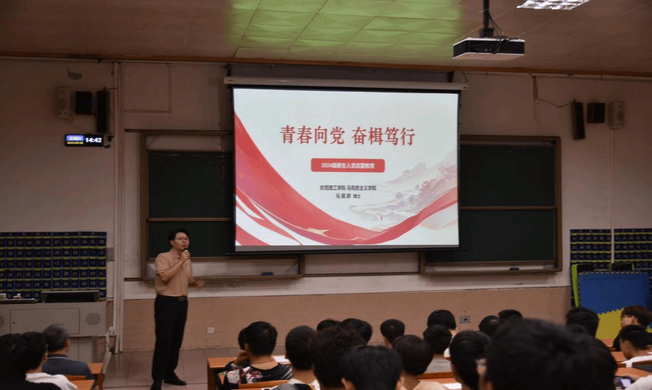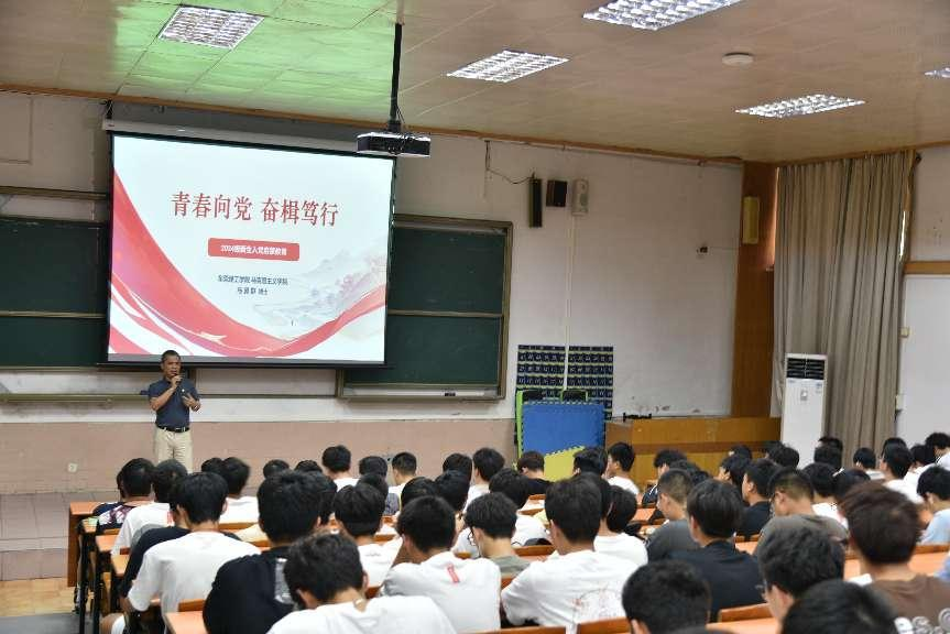 入党启蒙教育是引导青年学生正确认识党、端正入党动机的重要环节,为加强新生理想信念教育,激发青年学生政治热情,教育引导我院2024级新生积极向党组织靠拢。9月26日,粤台学院邀请马克思主义学院马冀群博士为2024级全体新生讲授了以《青春向党 奋楫笃行》为题的入党启蒙教育党课,会议由学院党委副书记丘永辉主持。