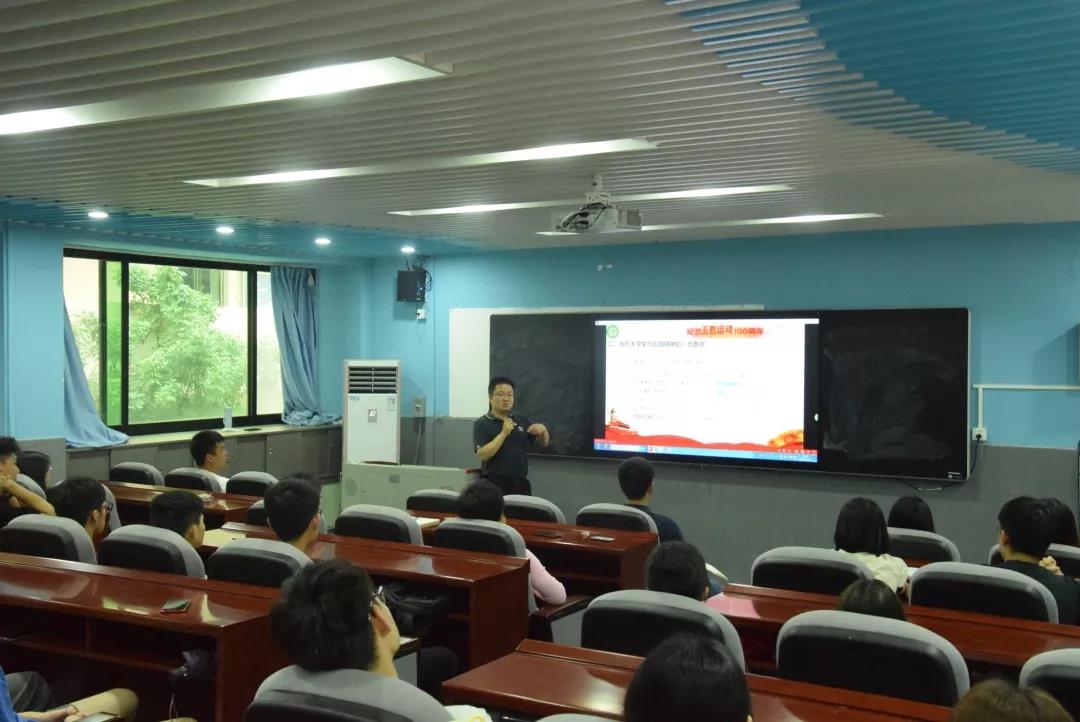 5月29日,yl6809永利检测中心分党校第七期培训班第四讲在实验楼217举行,本次授课的主题为:“学习习近平总书记在纪念五四运动100周年大会上的讲话精神”,主讲人为yl6809永利检测中心学工办主任陈伟鹏老师,教工党员及24名入党积极分子出席。