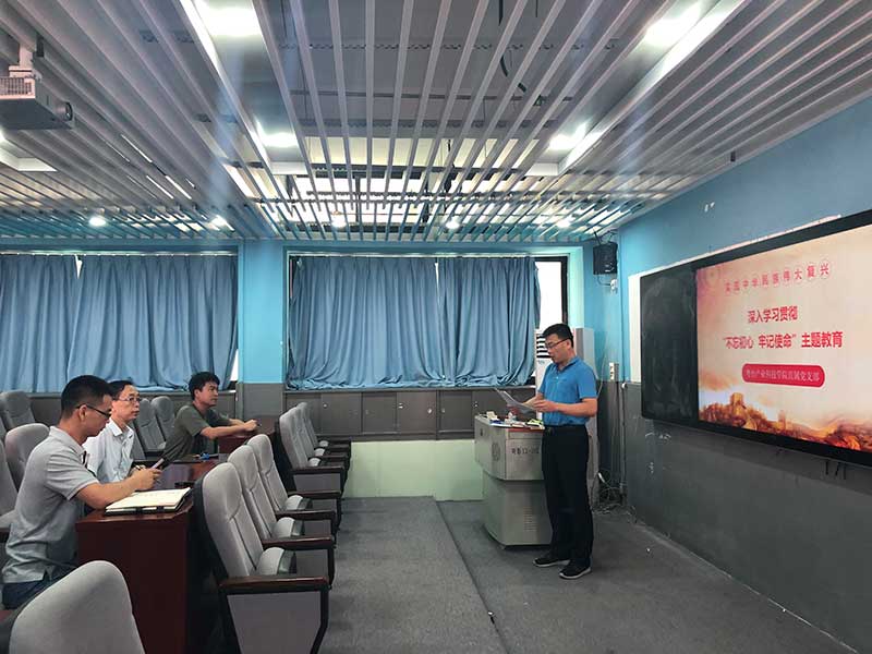 9月12日,粤台学院科技学院直属党支部在实验楼217组织召开支部党员大会,深入学习贯彻“不忘初心、 牢记使命”主题教育精神,会议由支部书记陈伟主持。
