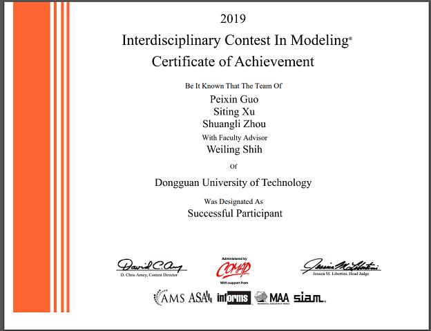 近日,美国数学建模竞赛官方网站传来消息,粤台学院2017级学生郭培信、许思婷及周双利组成的代表队获得了2019年美国大学生数学建模竞赛(MCM/ICM)SP奖(国际三等奖),是学院第二次获得该赛事奖项。据悉,MCM/ICM是COMAP在美国国家科学基金会等联合支持下组织的,是在世界范围内最权威的、最具影响力的国际性大学生数学建模竞赛。
