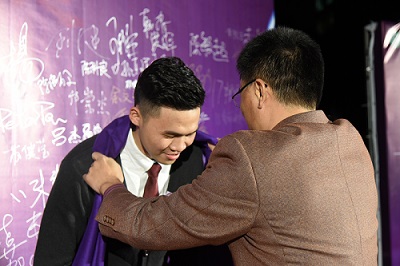 颁奖过后,yl6809永利检测中心的第一届学生陈敏超师兄跟同学们分享感想。身在台湾奋斗的师兄姐也通过VCR带来了祝福。