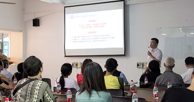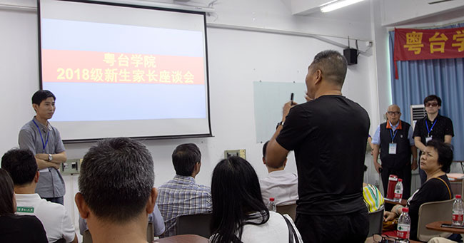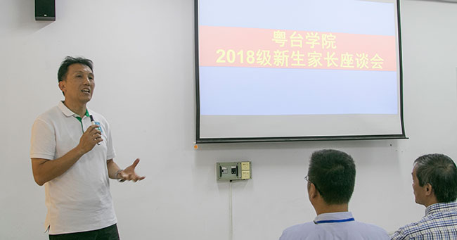陈伟院长向家长们总体介绍了东莞理工学院基本情况,并就粤台学院办学优势与特色作了详细讲解,并介绍了各学院的人才培养方案。