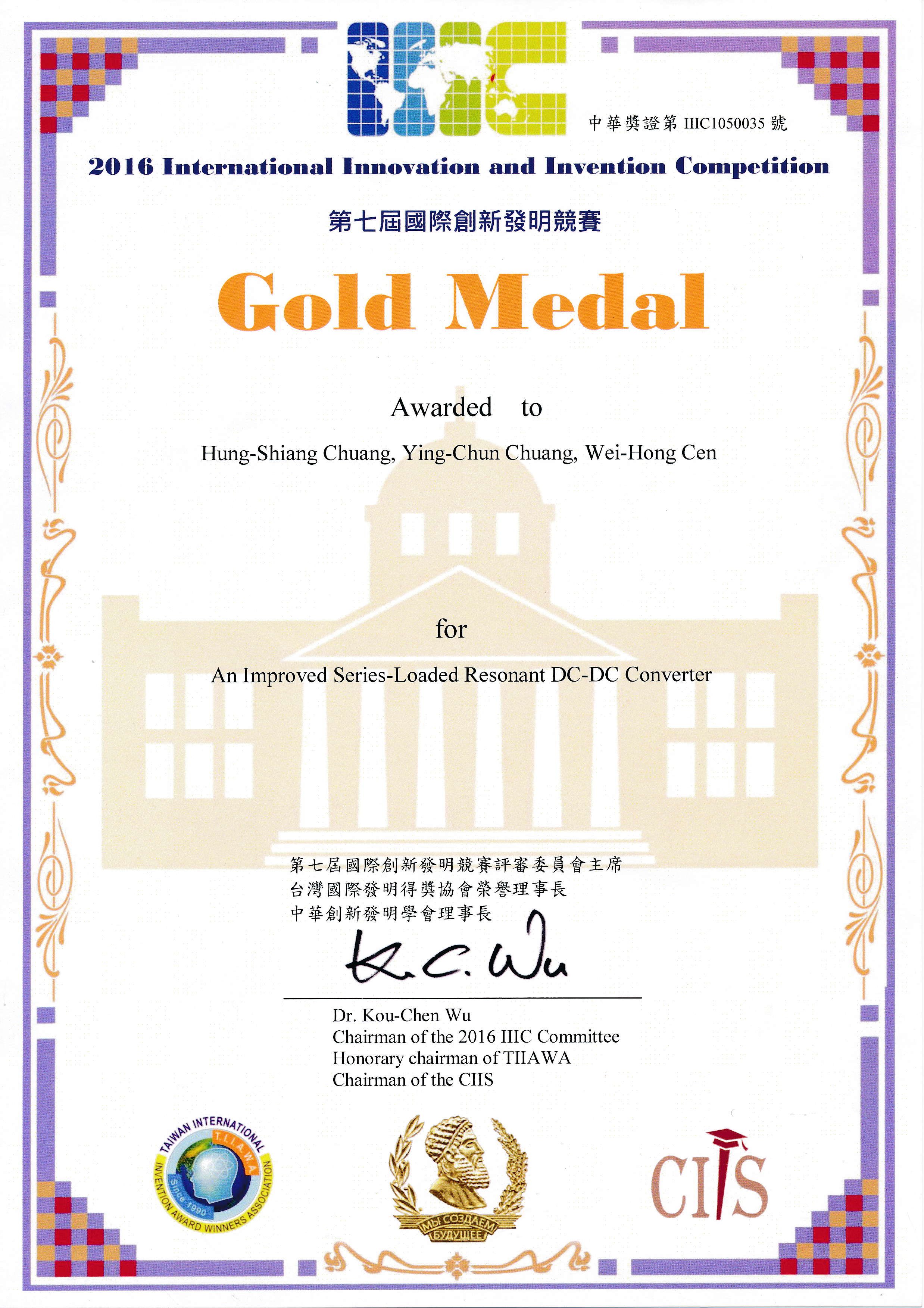 据悉,“国际创新发明竞赛”每年由俄罗斯国际发明协会与“中华创新发明学会”共同主办,自2010年起已连续举办7年,每年来自全世界各级研发机构一同参与竞赛;是创新发明界每年重要的活动之一。