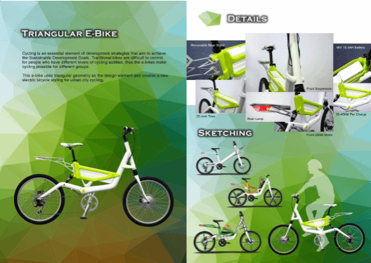yl6809永利检测中心马居正老师的工业设计作品Triangular E-Bike获得2022 DiD Award 东莞杯国际工业设计大赛金奖(港澳台创新设计对接赛)。设计动机是由于自行车为实现可持续发展目标发展战略的一个基本要素。这款电动自行车使用三角形几何作为设计元素,为城市自行车创造了一种新的电动自行车造型。