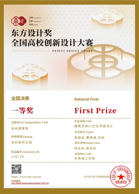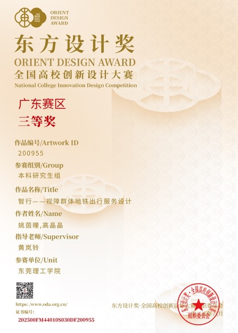 近日,2025第11届东方设计奖·全国高校创新设计大赛接续公布省级赛及国赛奖项。东莞理工学院粤台学院学生充分展现了扎实的专业素养和卓越的创新精神,多个参赛作品取得了优异成绩。在省级赛共获得3个三等奖,并接续在国赛再获得一等奖1 项,三等奖1项。
