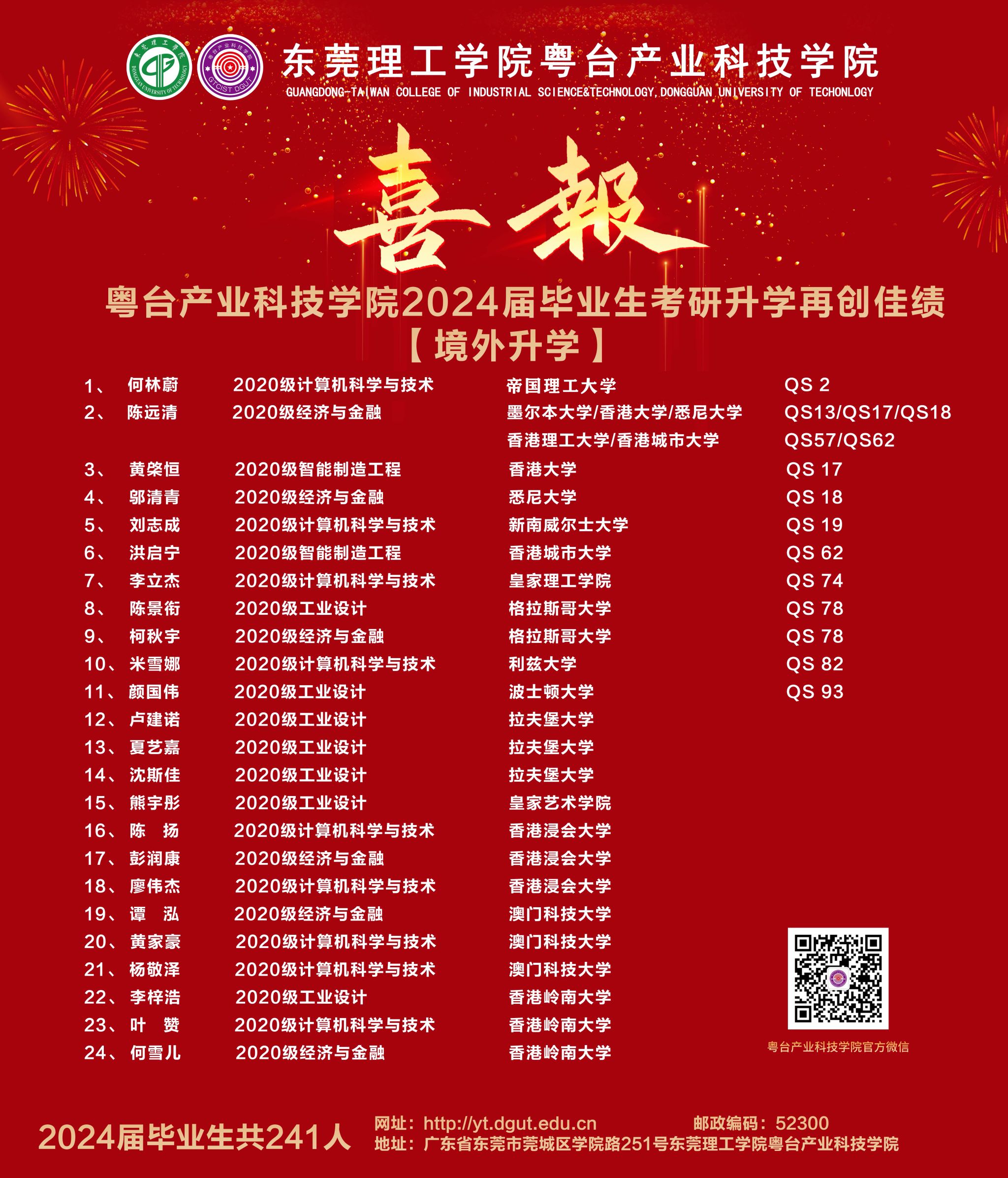 恭贺我院2024届毕业生考研升学再创佳绩【境外升学】